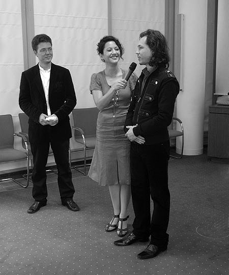 "Gedenkveranstaltung für Eva Strittmatter", (v.l.n.r.) Verleger Jonas Plöttner, Fotografin Rengha Rodewill, Jounalist Michael Hametner (MDR-Figaro), Alte Handelsbörse Leipzig, 2011