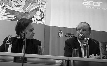 Rengha Rodewill & Robert Zagolla, Lesung und Gespräch "Angelika Schrobsdorff – Leben ohne Heimat", Veranstaltungsforum Halle 5, Leipziger Buchmesse, 2017